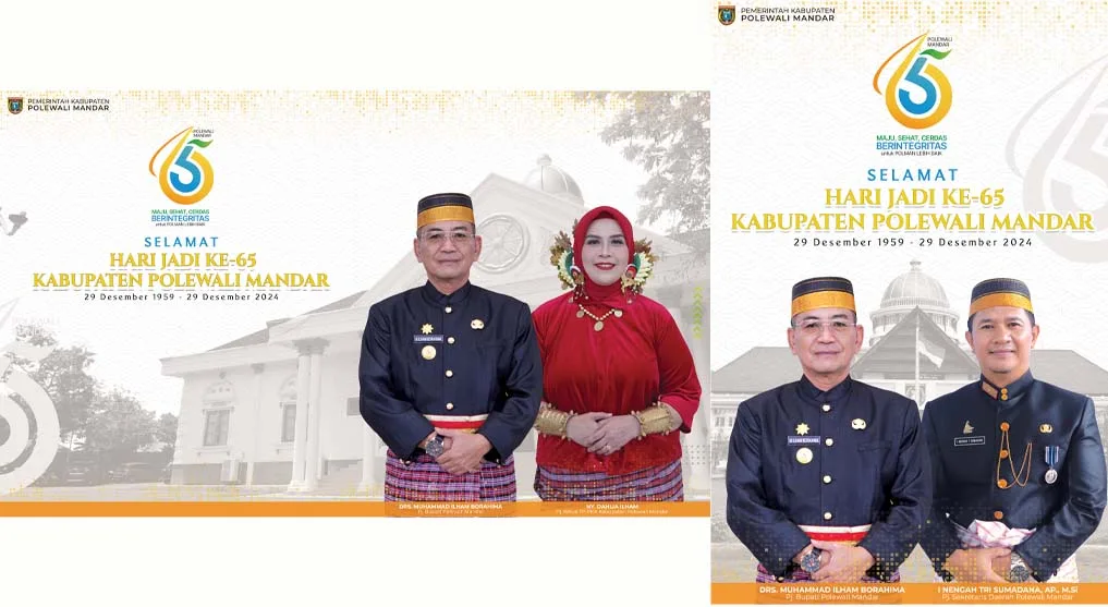 MANDARNESIA.COM, Polewali — Hari Jadi ke-65 Kabupaten Polewali Mandar jatuh pada 29 Desember 2024 ini berdasarkan pada Peraturan Daerah Kabupaten Polewali Mandar Nomor 2 Tahun 2009 tentang Hari Jadi Kabupaten Polewali Mandar, bahwa Hari Jadi Kabupaten Polewali Mandar ditetapkan pada tanggal 29 Desember 1959 dan diperingati setiap tahun pada tanggal 29 Desember.