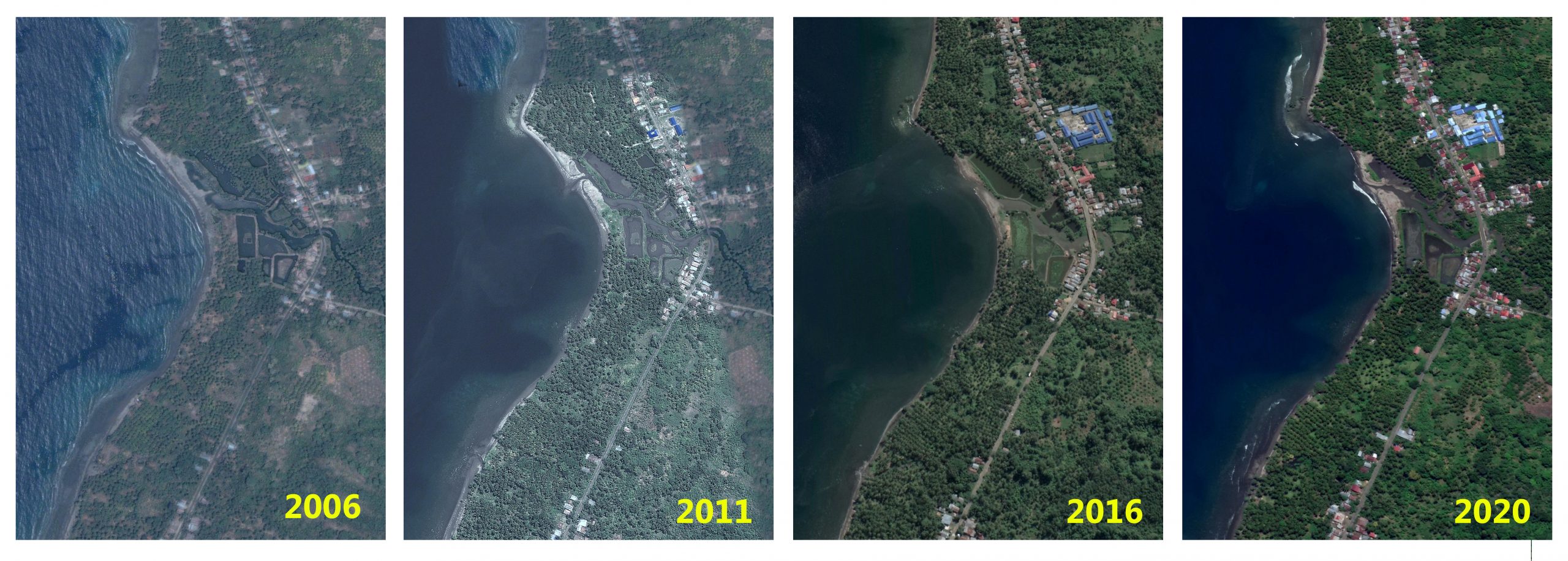 MALUNDA, mandarnesia.com — Pengikisan pesisir di Desa Mekatta, Kecamatan Malunda, Majene dari tahun ke tahun akibat penambangan pasir, dapat dilihat dari hasil rekaman citra satelit. Google earth membandingkan garis pantai tersebut di tahun 2006, 2011, 2016 dan 2020. Hasilnya terjadi pergeseran yang mengubah garis pantai.